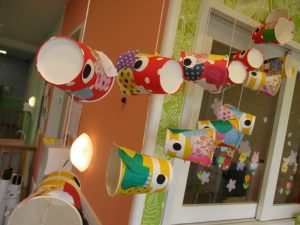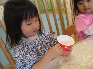 りんご組さんは紙コップで立体的なこいのぼりを作りました![]()