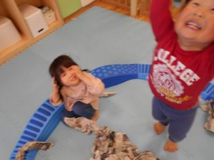 全力で遊ぶ姿を見ると、そんな遊び方もあるんだな~と子どもたちの想像力の豊かさに驚くことも・・・![]()