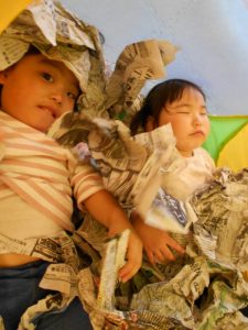 りんご組さんは新聞紙あそびをしました![]()