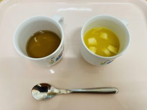 ※スパゲティミートソースの麺は、1歳児クラスは2cm位にカットし、2歳児クラスは5cm位の長さにして年齢にあった形状で提供しています。今日もみんなたくさん食べました♪