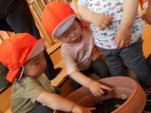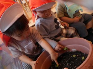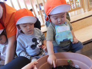 子どもたちも指先で ちょんちょん と触って成長を喜んでいます![]()