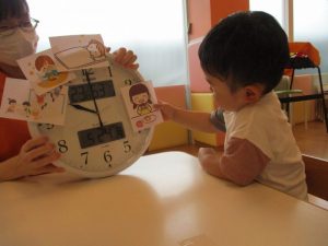『〇時は遊ぶ時間』『〇時は給食の時間』と今は何をする時間かを教えてくれるのが時計です![]()