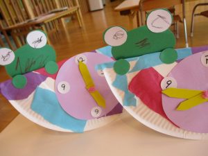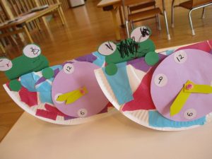 そこで『時間に興味をもとう!』とカエルさんの時計づくりに挑戦しました![]()