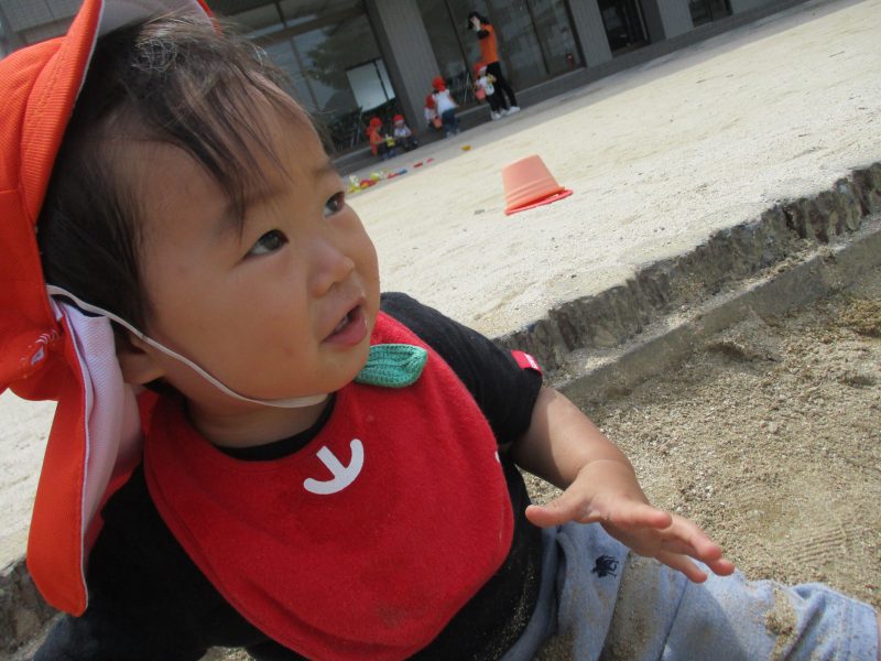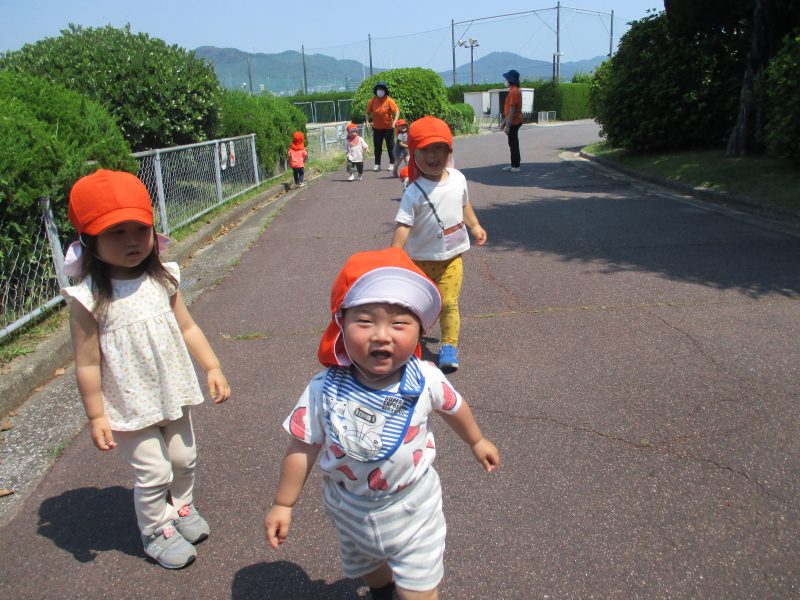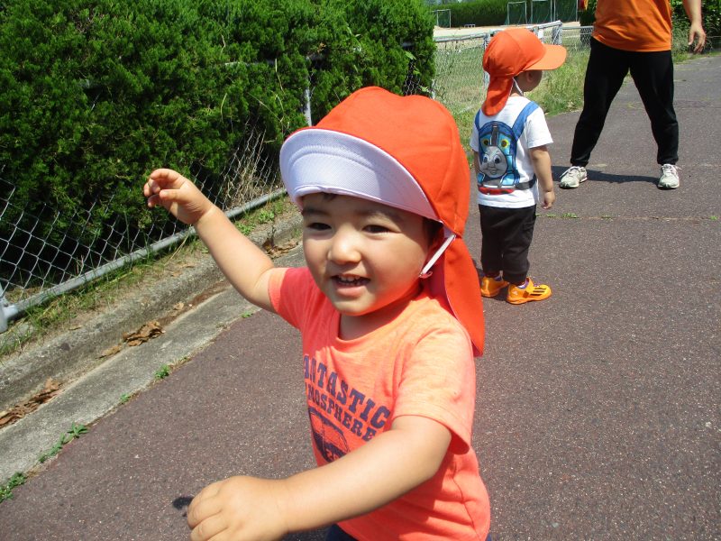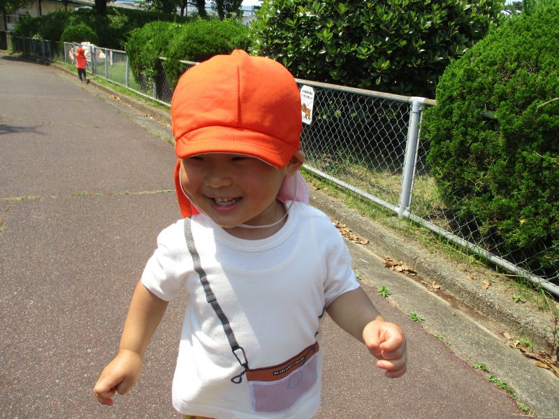 かけっこをしているりんご組さんにつられて、いちご組さんもやってきました![]()