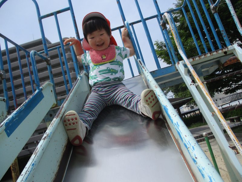 身振り手振りで自分の気持ちを伝えようとすることも増えてきたいちご組さんは、最近すべり台ブームのようで、『あっち、あっち