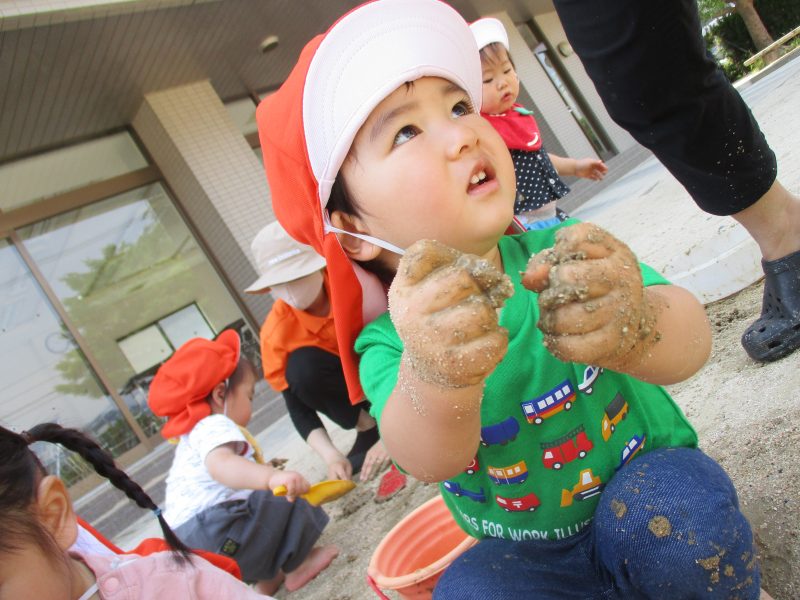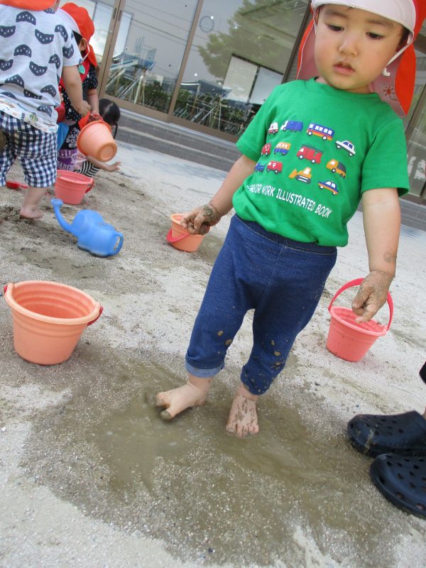 泥んこは水の量やその日の天気によって固さや感触が変化します![]()