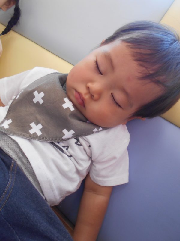 保育園に着く頃には、もう限界だったようです![]()
