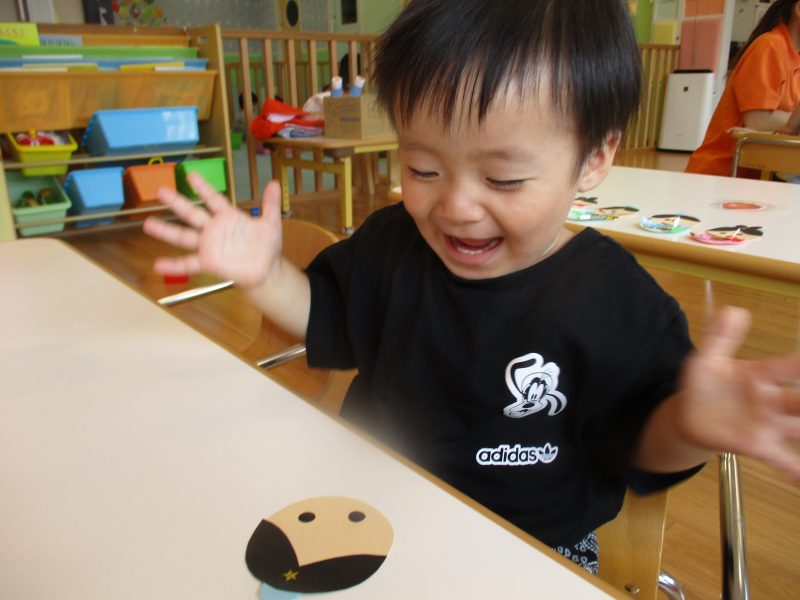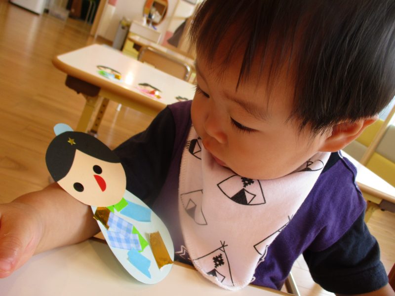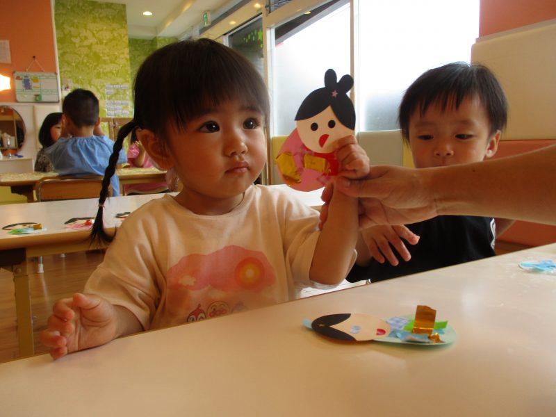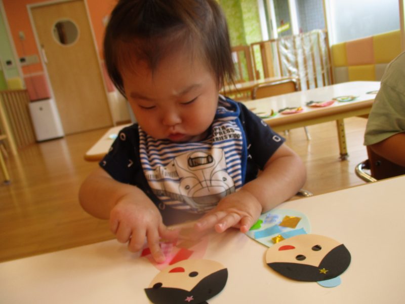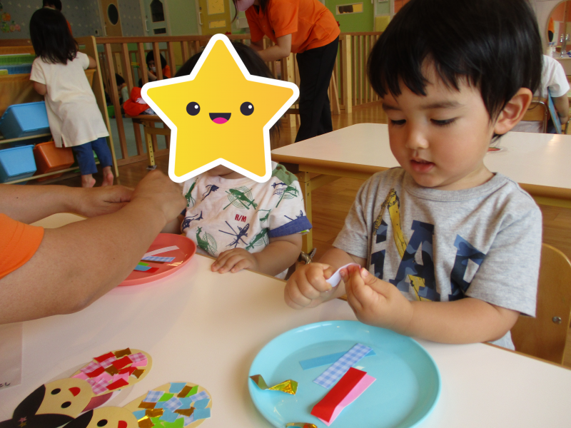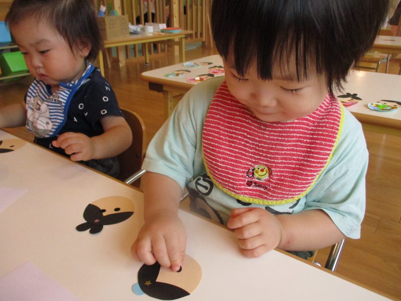 まずは織姫・彦星の目と口をシールで貼りました![]()