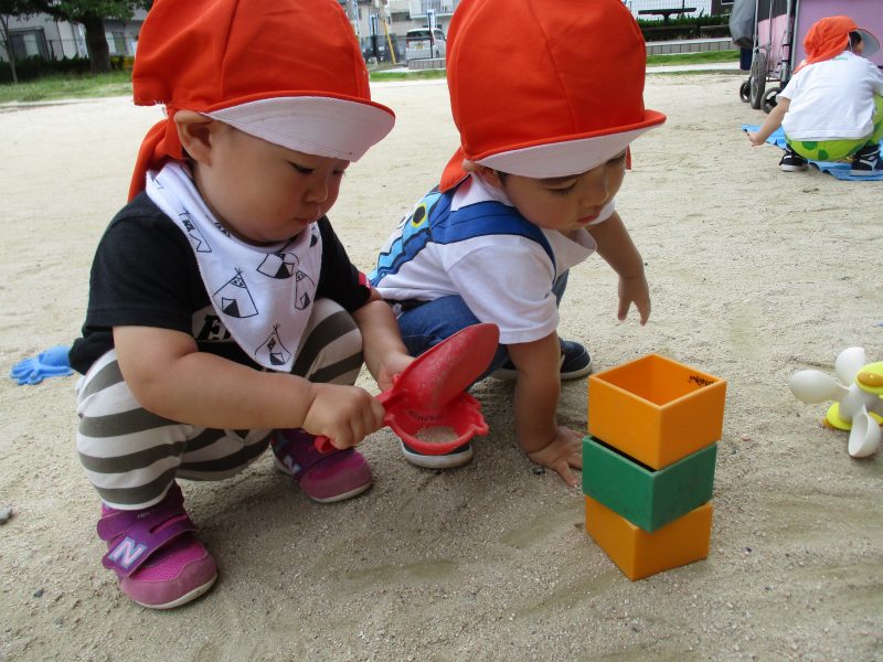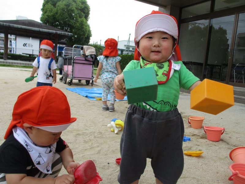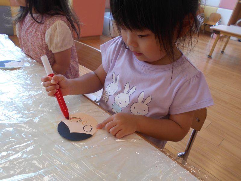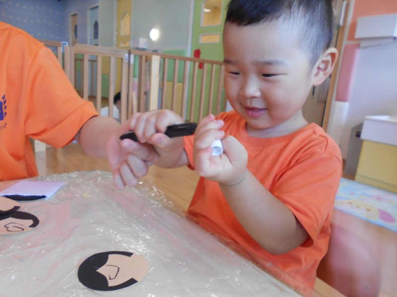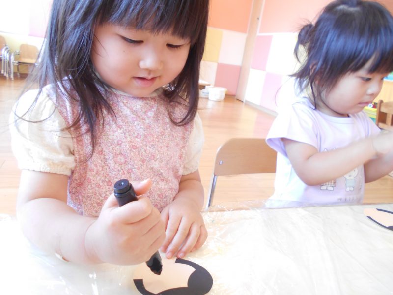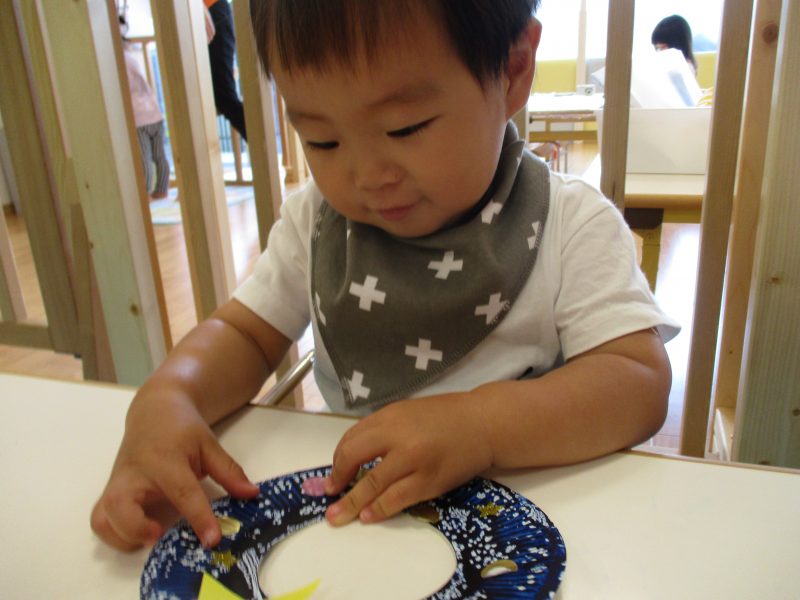 いつも使っているシールと素材が違い、取れにくかったり手にくっついたり苦戦しているお友だちもいましたが、困った時には保育者に『手伝って』『助けて』とアピールすることができるようになってきました![]()