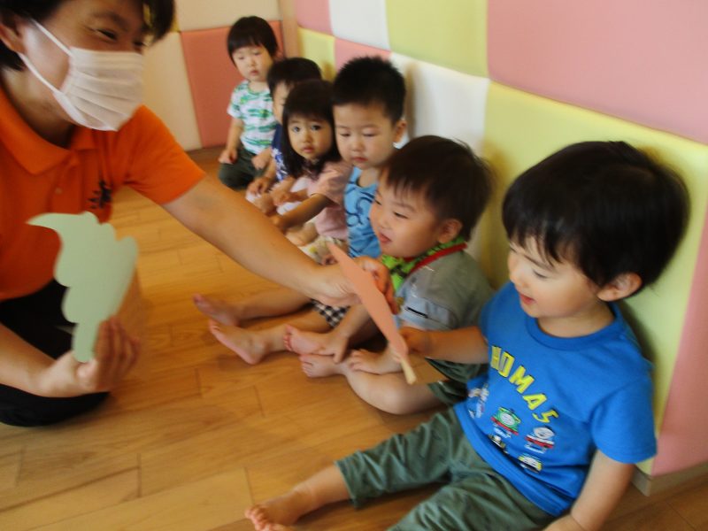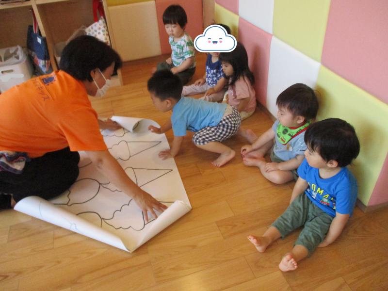 子どもたちに「アイスクリームって知ってるかな⁇」と画用紙で作ったアイスを渡してみると…