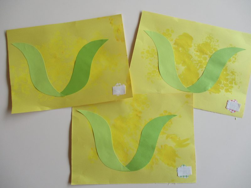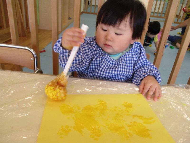 画用紙にプチプチスタンプを押して、とうもろこし模様を付けてあそびました?