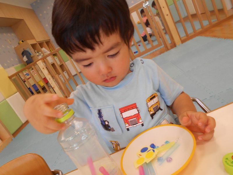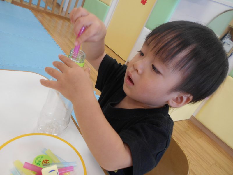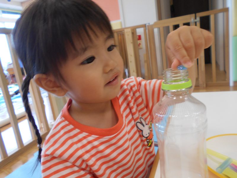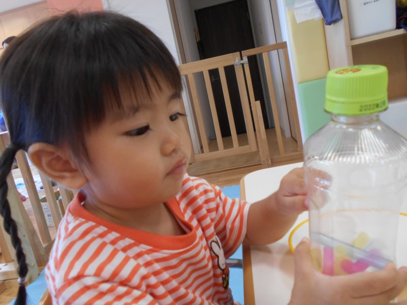 ポットン落としが大好きないちご組さんは、夢中になって取り組んでいました![]()