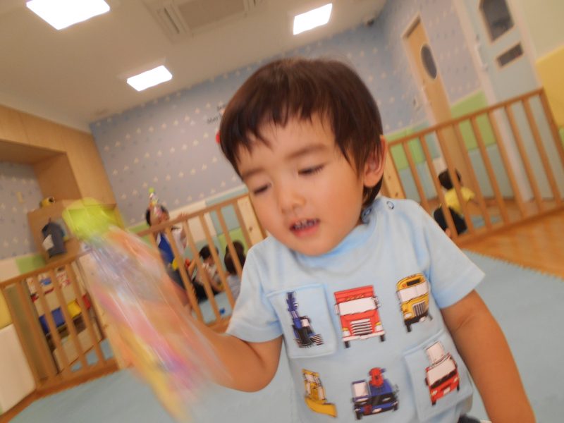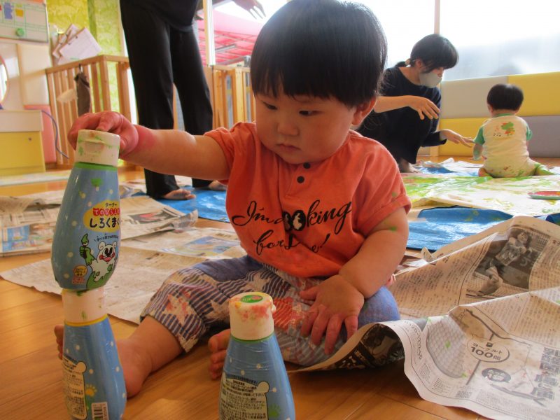 もも組さんは初めてのことに少し涙が出ていましたが、思いっきり遊ぶりんご組さんの姿を見て少しずつ興味をもっているようでした![]()