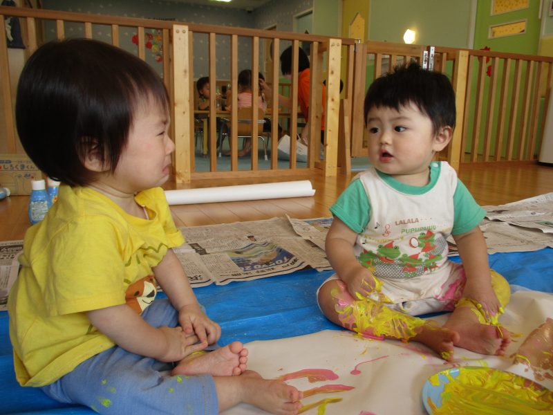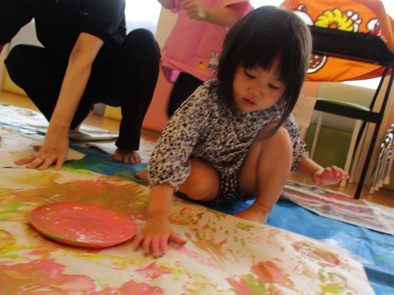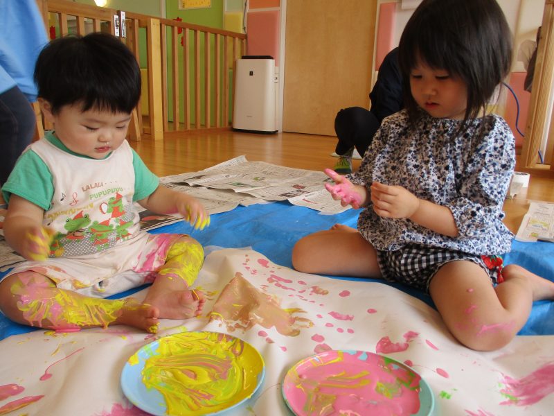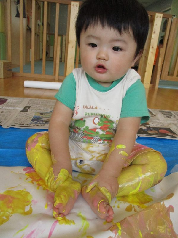 さて 今週はりんご組さんともも組さんで、毎年恒例になりつつある ボディペインティングをしました![]()