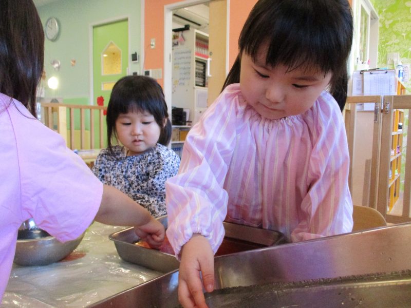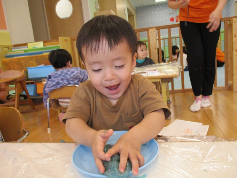 感触あそびは子どもたちの指先の感覚や運動能力を伸ばすだけでなく、集中して遊ぶことによって集中力も養い、気持ちの安定にも繋がります![]()