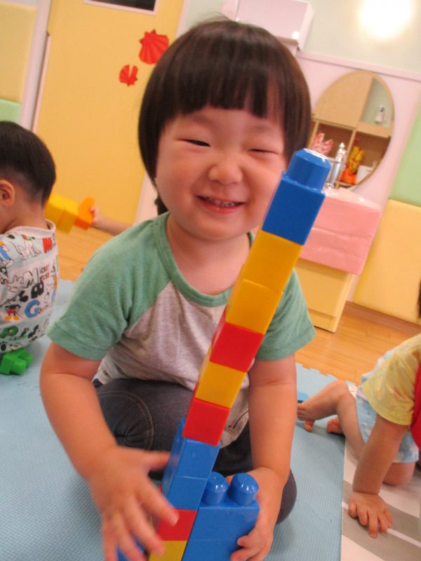 メガブロックをコップに見立てて、お茶休憩~![]()