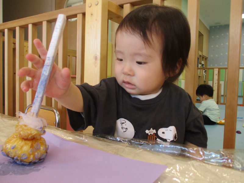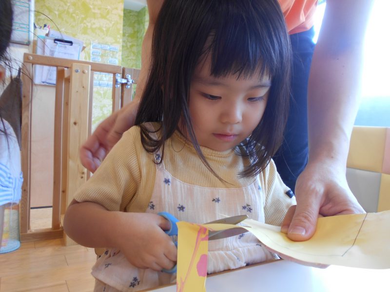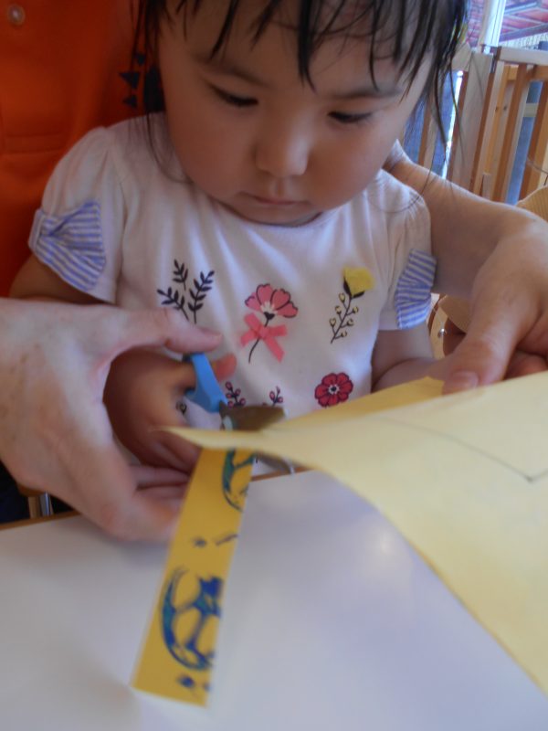 最初は保育者が手を添えながらでしたが、少しずつ慣れ自分で動かそうとする姿も見られました![]()