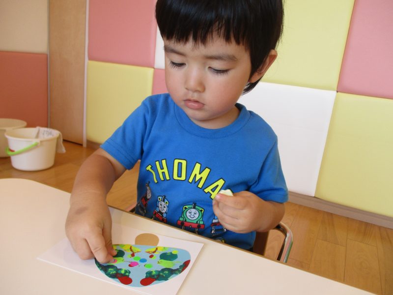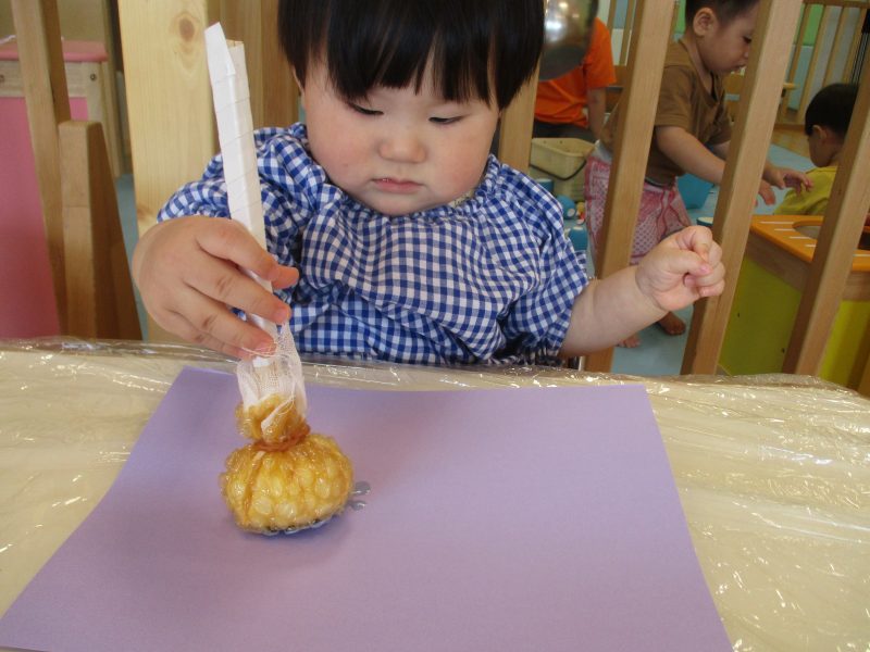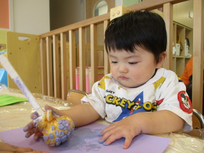 もも組さんはプチプチを使ったタンポでぶどう作りです![]()