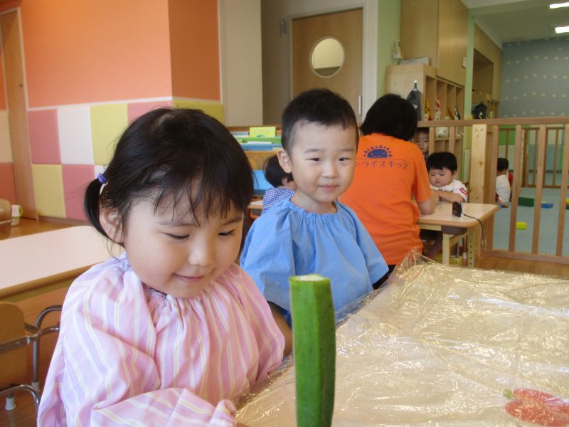 見た目とは違う、野菜のおなかに興味津々の子どもたち![]()