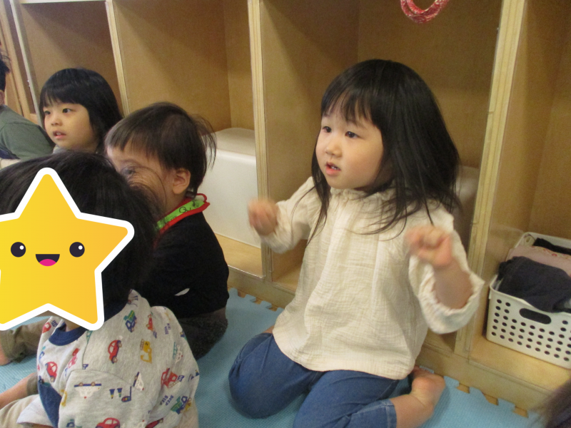 2番、3番では左手・両手と続いていき、『チョキチョキダンス』を『グー』や『パー』にして、色々なバージョンを楽しんでいます![]()