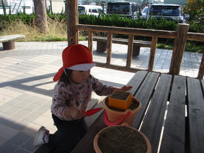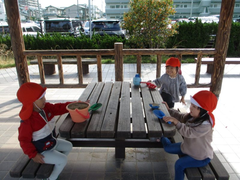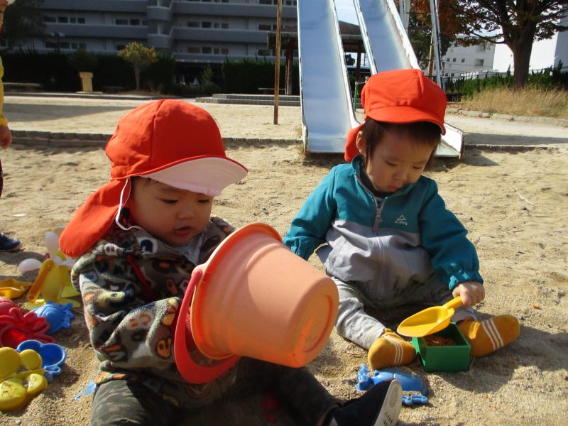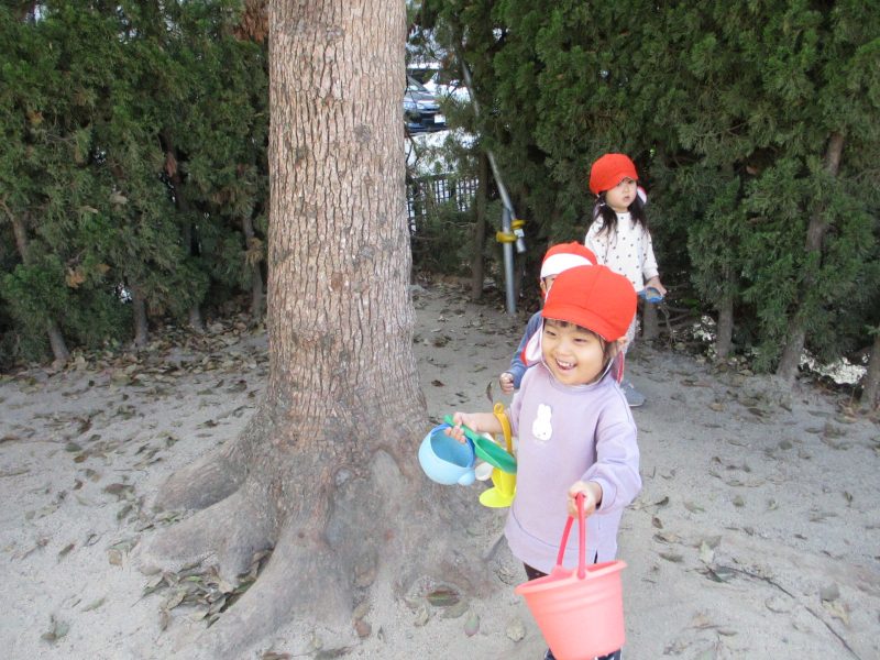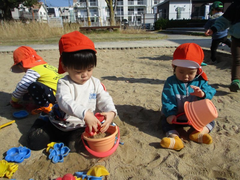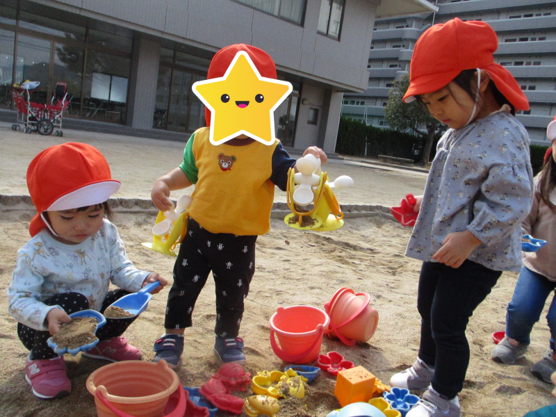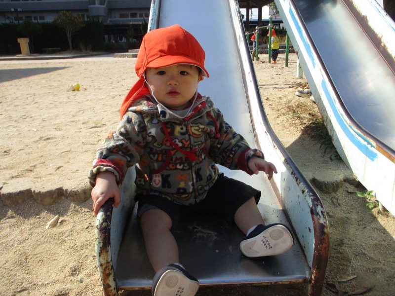 ポカポカ気持ちのいい天気の中、すべり台や砂場あそびを満喫中![]()