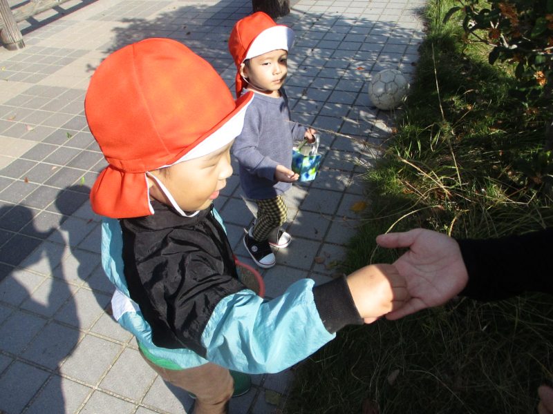 もも組さんも お兄ちゃん、お姉ちゃんについて お散歩を楽しんでいます![]()