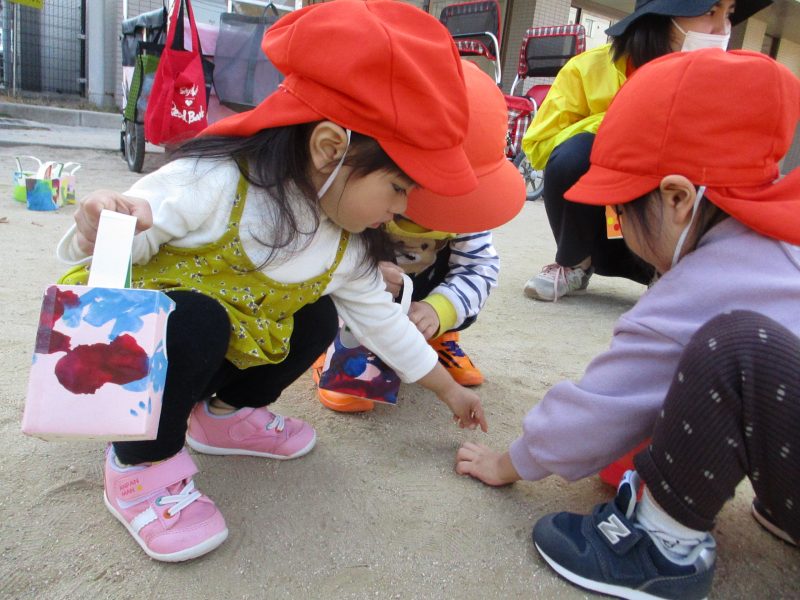 公園の落ち葉が赤や黄色、オレンジへと姿を変え、探索活動が一段と楽しい季節になりました![]()