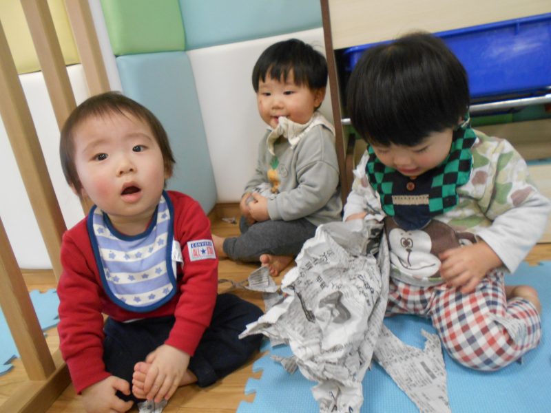 新聞紙あそびをしたりボールあそびをしたり・・