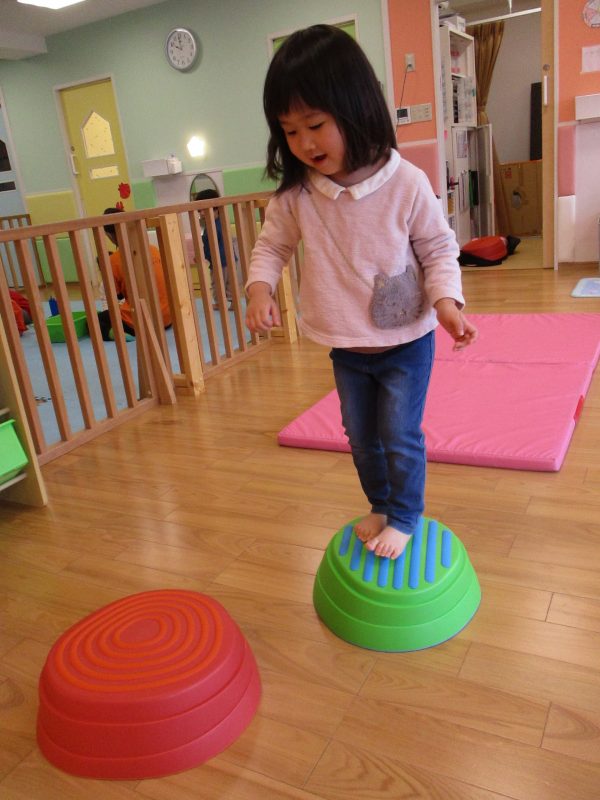 バランスストーンの上を歩きます!!