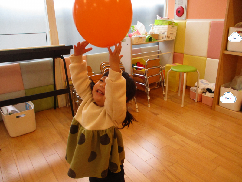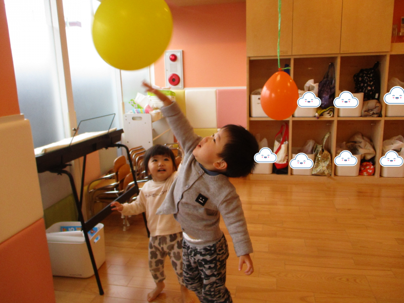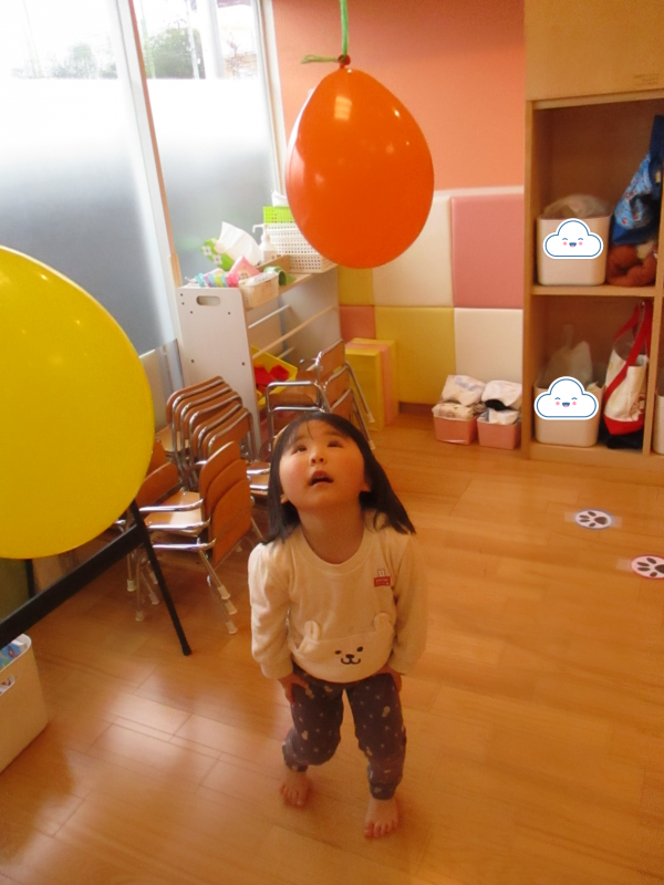 天井から吊り下げられた風船にタッチ!!