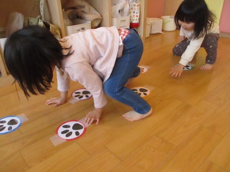 手形に合わせてくまさん歩き!!