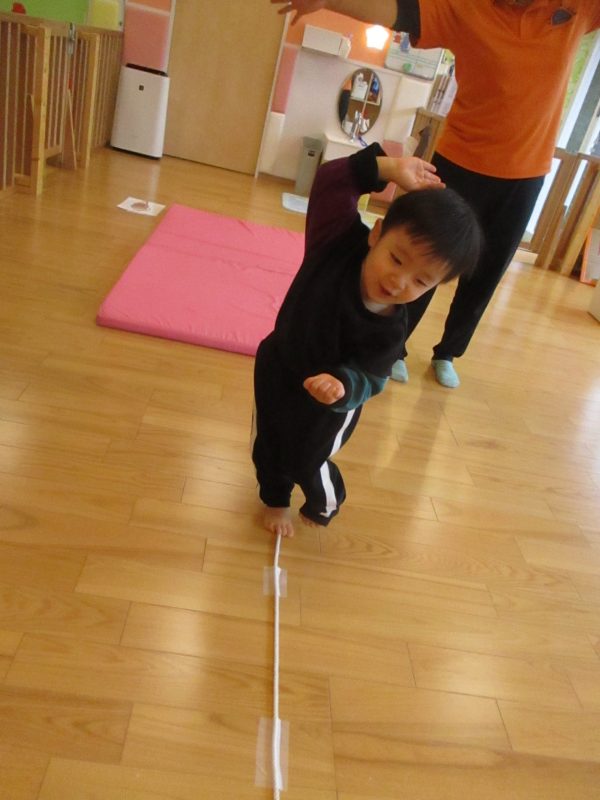 ロープに沿って歩きます!!
