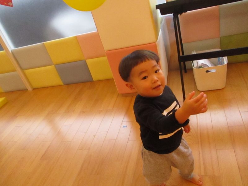 天井から吊り下げられた風船をタッチします!!