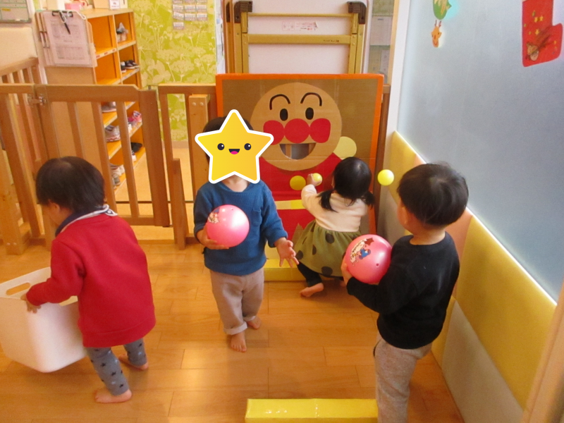 最後はボールを使ってアンパンマンの的当て!!