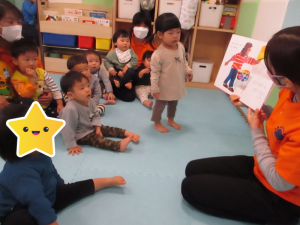 こんにちは! サンライズキッズ観音新町園です 今日の絵本は『えをかくかくかく』です ペ...