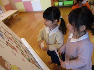 続いて、『ひな人形を飾ろう!』ゲームをしました