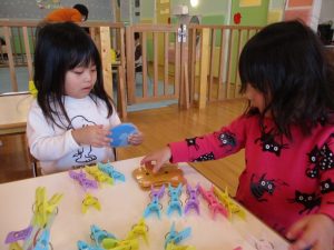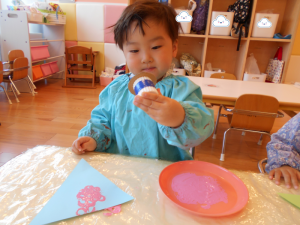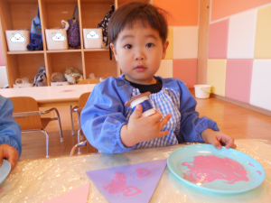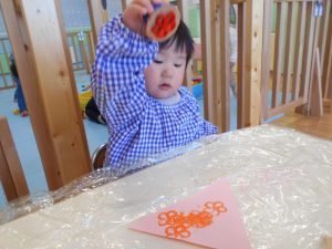 今月、卒園を迎えるりんご組さんに渡す、プレゼント作りをしていました