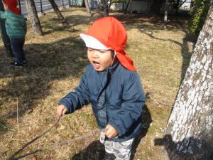まつぼっくりを探したり、葉っぱを拾ったり自然に触れながらのびのびと遊んでいました