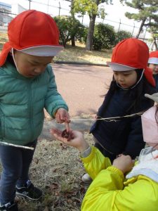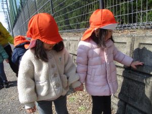 久しぶりの散歩でしたが、『あったかいね』『気持ちいいね』とお友だちとの会話を楽しみながら歩く子どもたち