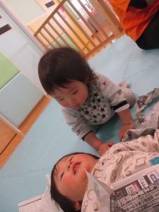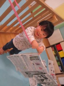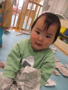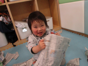 新聞紙を握りしめたり引っ張ったりする力も強くなってきました