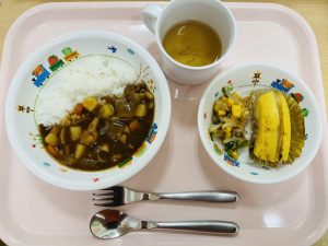 ※「いいにおいがするね~♪」「おなかすいた~」とかわいい声が聞こえてきました。食べることに興味があるのは元気な証拠ですね!!