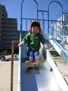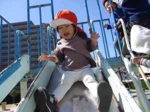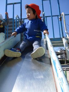 すべり台の上り下りも一人でできるようになり、ますます楽しくなってきているようです![]()