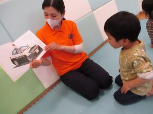 今日の絵本は『なんの くるまに のるのかな?』です![]()