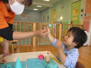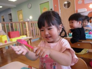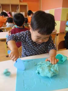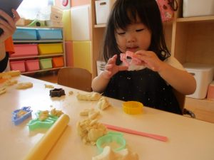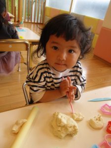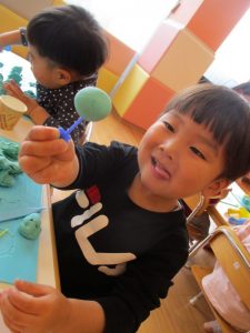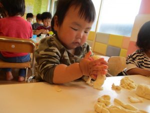 粘土あそびはこねる・ちぎる・伸ばすなど指先を細かく使うことで手先の器用さが育まれ、遊んでいる中で自然と集中力も身につくなど、魅力たっぷりのあそびです![]()