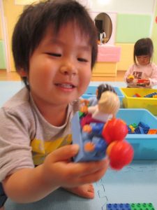 ブロックやままごとでも色々な遊び方を発見したり試したりしています![]()