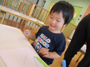 『どんないろがすき?』を口ずさみながらクレヨンを選ぶところからウキウキ楽しそうな子どもたち![]()