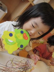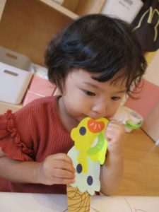 『アイスクリーム』のうたを歌いながら、できあがった作品を嬉しそうに眺めています![]()