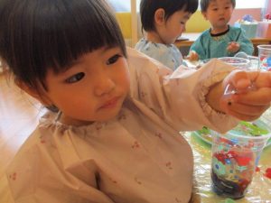 小さくなった寒天を型抜きに集めて形を作るお友だちもいました![]()