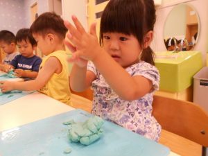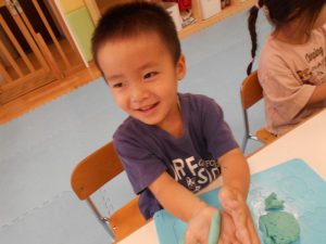 最後にりんご組さんの粘土あそびの様子を少し・・