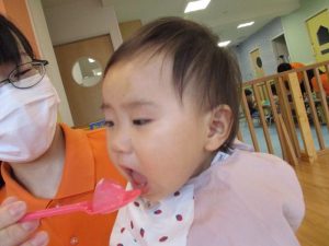 遊び方が分かっているいちご組さんはスプーンやコップなど好きな道具を選び、早速遊び始めました![]()